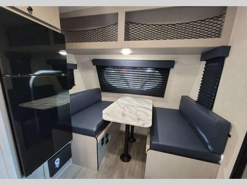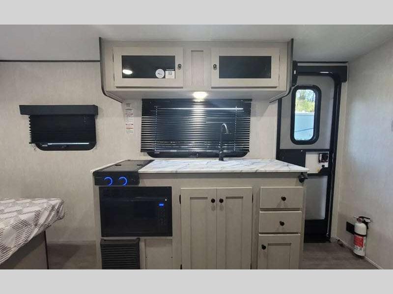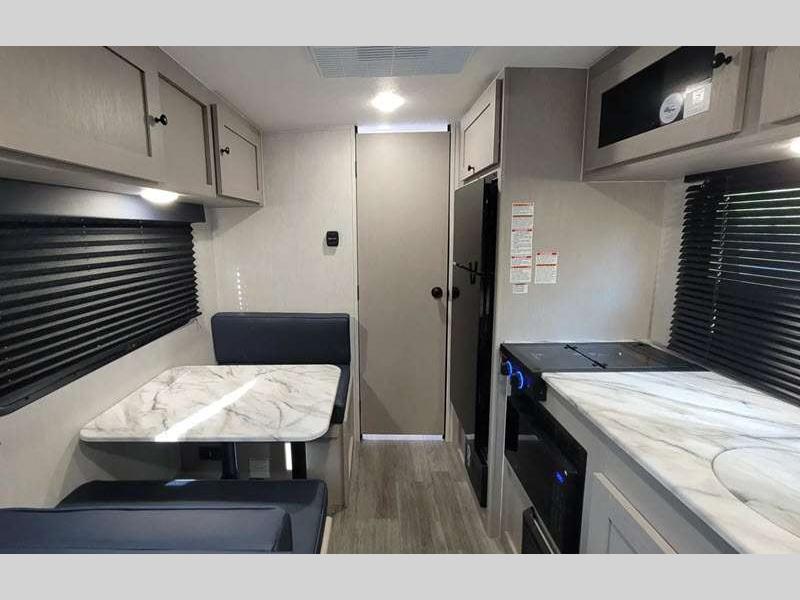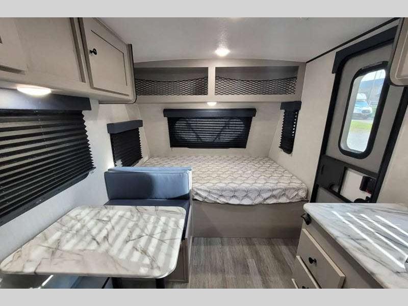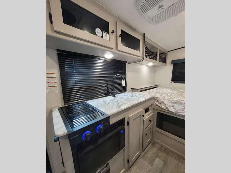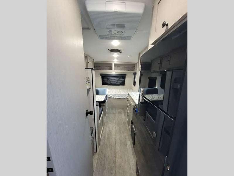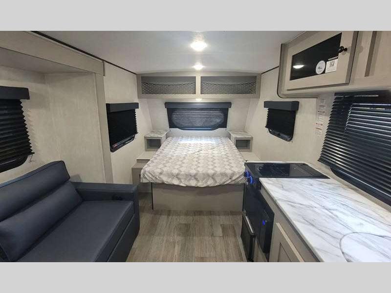 Sleeps 3 Slides 1 Length 21 ft 8 in Ext Width 7 ft Ext Height 9 ft 10 in Hitch Weight 378 lbs GVWR 4700 lbs Dry Weight 3556 lbs Cargo Capacity 1144 lbs Fresh Water Capacity 52 gals Grey Water Capacity 35 gals Black Water Capacity 35 gals Tire Size 16" Available Beds Full Refrigerator Type Double Door Cooktop Burners 2 Shower Size 24" x 36" Number of Awnings 1 LP Tank Capacity 20 lbs. Water Heater Type Tankless AC BTU 15000 btu Awning Info 14' Power w/LED Light Axle Count 1 Number of LP Tanks 2 Shower Type Standard Similar Floorplans