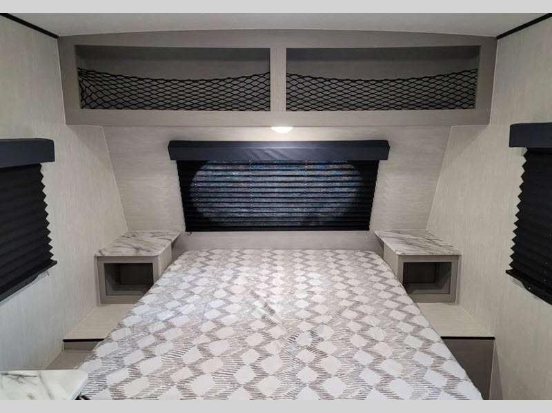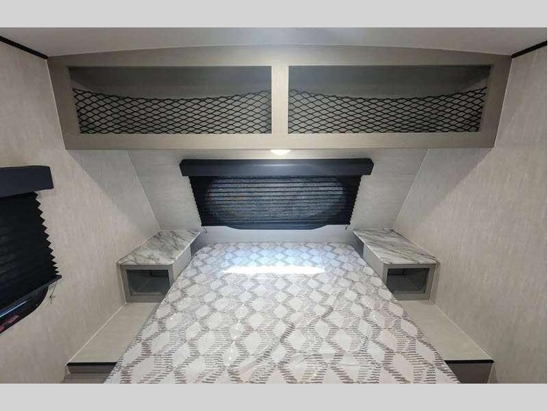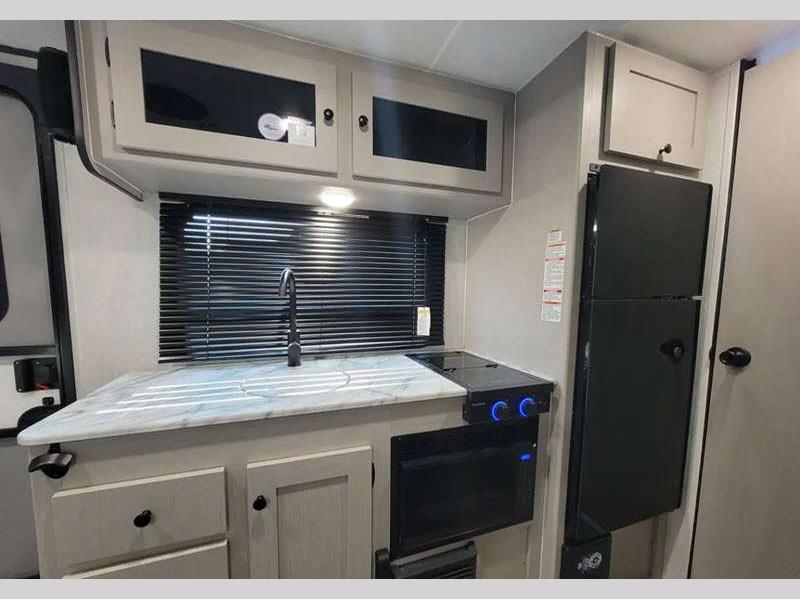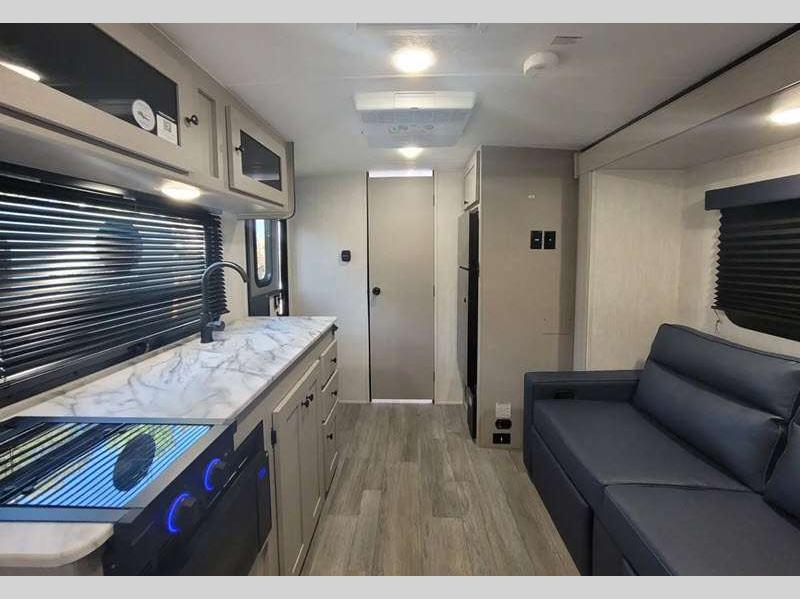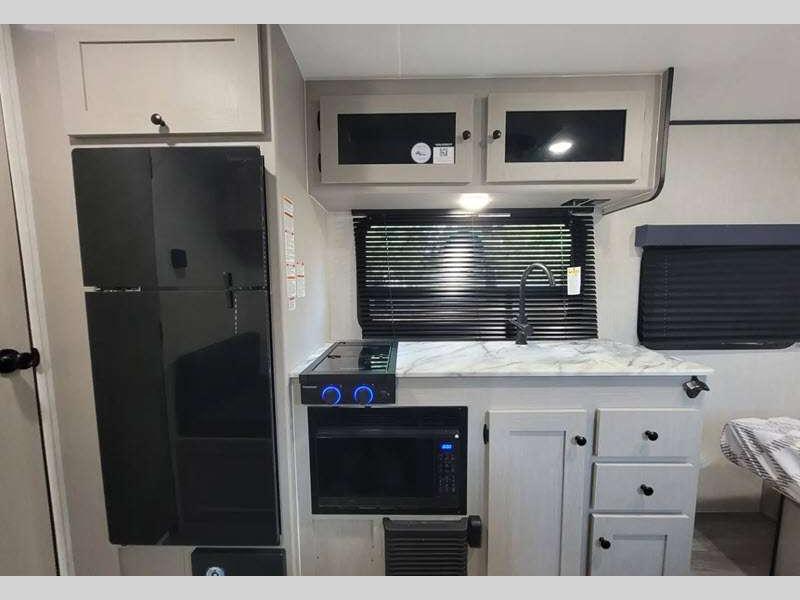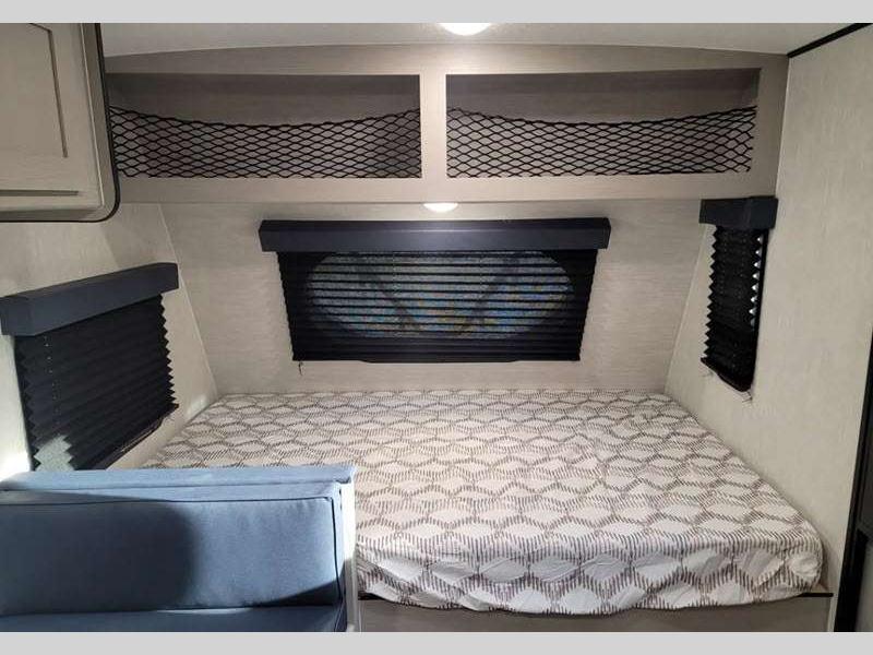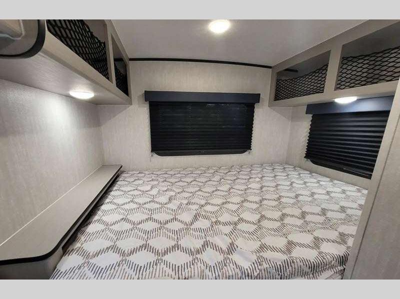 Sleeps 3 Slides 1 Length 21 ft 8 in Ext Width 7 ft Ext Height 9 ft 10 in Hitch Weight 378 lbs GVWR 4700 lbs Dry Weight 3556 lbs Cargo Capacity 1144 lbs Fresh Water Capacity 52 gals Grey Water Capacity 35 gals Black Water Capacity 35 gals Tire Size 16" Available Beds Full Refrigerator Type Double Door Cooktop Burners 2 Shower Size 24" x 36" Number of Awnings 1 LP Tank Capacity 20 lbs. Water Heater Type Tankless AC BTU 15000 btu Awning Info 14' Power w/LED Light Axle Count 1 Number of LP Tanks 2 Shower Type Standard Similar Floorplans