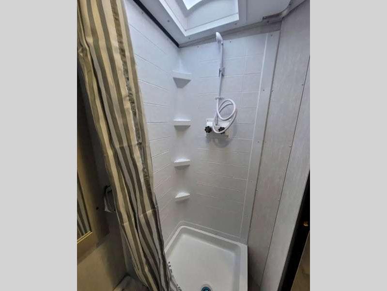 Sleeps 3 Length 18 ft 3 in Ext Width 7 ft Ext Height 10 ft 2 in Hitch Weight 374 lbs GVWR 3800 lbs Dry Weight 2940 lbs Cargo Capacity 860 lbs Fresh Water Capacity 52 gals Grey Water Capacity 27 gals Black Water Capacity 27 gals Tire Size 16" Available Beds Queen Refrigerator Type Double Door Cooktop Burners 2 Shower Size 24" x 36" Number of Awnings 1 LP Tank Capacity 20 lbs. Water Heater Type Tankless AC BTU 15000 btu Awning Info 10' Power w/LED Light Axle Count 1 Number of LP Tanks 2 Shower Type Wet/Bath Shower -