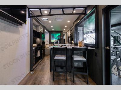 Sleeps 7 Slides 3 Length 45 ft 6 in Ext Width 8 ft 6 in Ext Height 13 ft 4 in Hitch Weight 3480 lbs Dry Weight 16949 lbs Cargo Capacity 4051 lbs Fresh Water Capacity 150 gals Grey Water Capacity 123 gals Black Water Capacity 32 gals Tire Size 16" Generator 6.0 NPS Fuel Capacity 40 gals Number Of Bunks 1 Available Beds King Refrigerator Type 12V Residential Refrigerator Size 16 cu ft Cooktop Burners 3 Shower Size 30" x 48" Number of Awnings 2 Garage Size 13 ft LP Tank Capacity 30 lbs AC BTU 54000 btu TV Info LR 55" TV, Garage 50" TV, Patio 50" TV Awning Info 10' and 20' Electric w/LED Lights Axle Count 2 Washer/Dryer Available Yes Number of LP Tanks 2 Shower Type Tub/Shower Combo Electrical Service 50 amp Solar Wattage 200 watts Similar Toy Hauler Fifth Wheel Floorplans