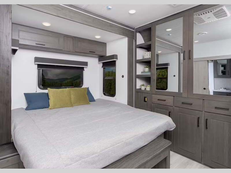 Sleeps 6 Slides 1 Length 33 ft 5 in Ext Width 8 ft 4 in Ext Height 12 ft 5 in Hitch Weight 1175 lbs Dry Weight 7602 lbs Cargo Capacity 3698 lbs Fresh Water Capacity 54 gals Grey Water Capacity 30 gals Black Water Capacity 30 gals Tire Size ST225/75R15E Furnace BTU 35000 btu Fuel Capacity 30 gals Number Of Bunks 1 Available Beds RV Queen Refrigerator Type 12V Refrigerator Size 10 cu ft Cooktop Burners 3 Number of Awnings 1 Axle Weight 5100 lbs Garage Size 15 ft LP Tank Capacity 30 lbs Water Heater Type Girard On Demand Awning Info 18' Electric with Adjustable Arms, Auto Dump, LED Lights Axle Count 2 Number of LP Tanks 2 Shower Type Tub/Shower Combo Electrical Service 50 amp Similar Floorplans
