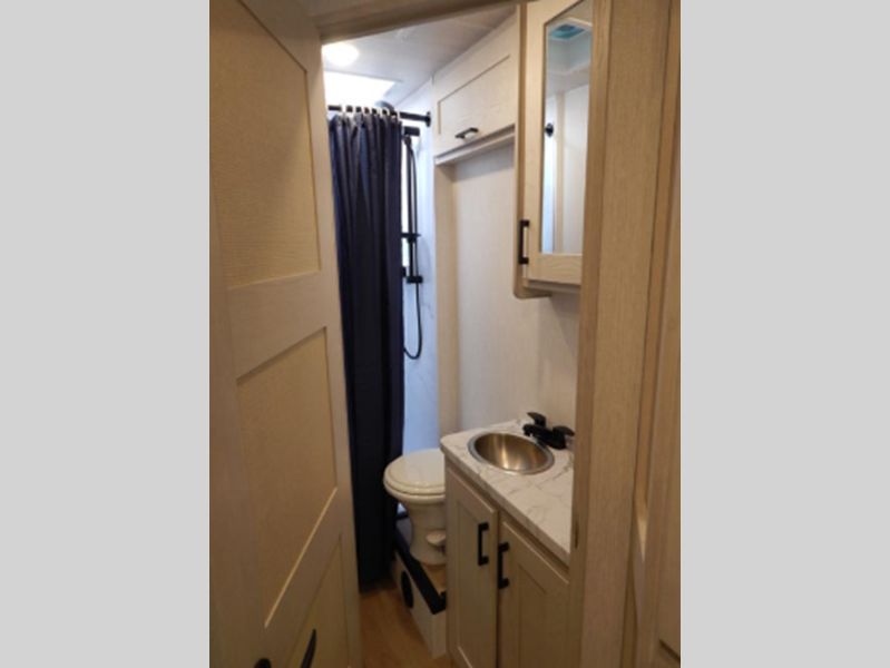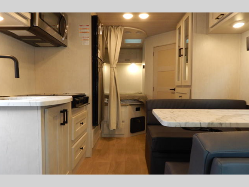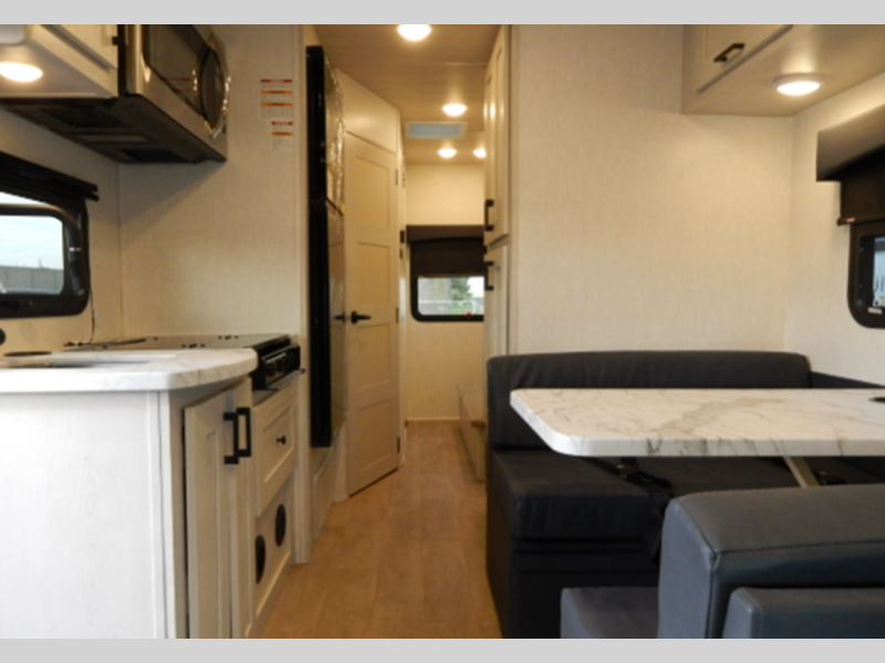 Sleeps 4 Slides 1 Length 25 ft 1 in Ext Width 8 ft 3 in Ext Height 10 ft 11 in Int Height 6 ft 10 in Interior Color Modern, Coastal, Adventure, Bourbon Exterior Color Charcoal, Azzuro, Rage Hitch Weight 7500 lbs GVWR 12500 lbs Fresh Water Capacity 40 gals Grey Water Capacity 28 gals Black Water Capacity 28 gals Furnace BTU 30000 btu Generator 4.9k Gas Fuel Type Gas Engine 7.3L V8 Chassis Ford E350 Fuel Capacity 40 gals Wheelbase 158 in Number Of Bunks 1 Available Beds Queen Refrigerator Type 12V Refrigerator Size 10 cu ft Cooktop Burners 3 Number of Awnings 1 Axle Weight Front 4600 lbs Axle Weight Rear 8500 lbs Water Heater Type On Demand AC BTU 13500 btu TV Info LR TV Awning Info Electric w/LED Lighting Gross Combined Weight 18500 lbs Shower Type Standard Similar Floorplans
