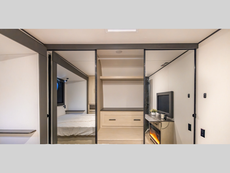 Sleeps 6 Slides 2 Length 38 ft 8 in Ext Width 8 ft Ext Height 11 ft 7 in Int Height 6 ft 10 in Hitch Weight 1108 lbs GVWR 9908 lbs Dry Weight 8265 lbs Cargo Capacity 1643 lbs Fresh Water Capacity 39 gals Grey Water Capacity 30 gals Black Water Capacity 60 gals Number Of Bunks 2 Available Beds Queen Refrigerator Size 10 cu ft Cooktop Burners 3 Number of Awnings 1 LP Tank Capacity 20 lbs Water Heater Type Tankless AC BTU 13500 btu Axle Count 2 Washer/Dryer Available Yes Number of LP Tanks 2 Shower Type Standard Solar Wattage 200 watts Similar Floorplans